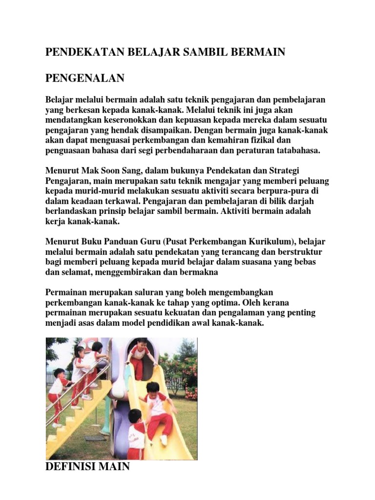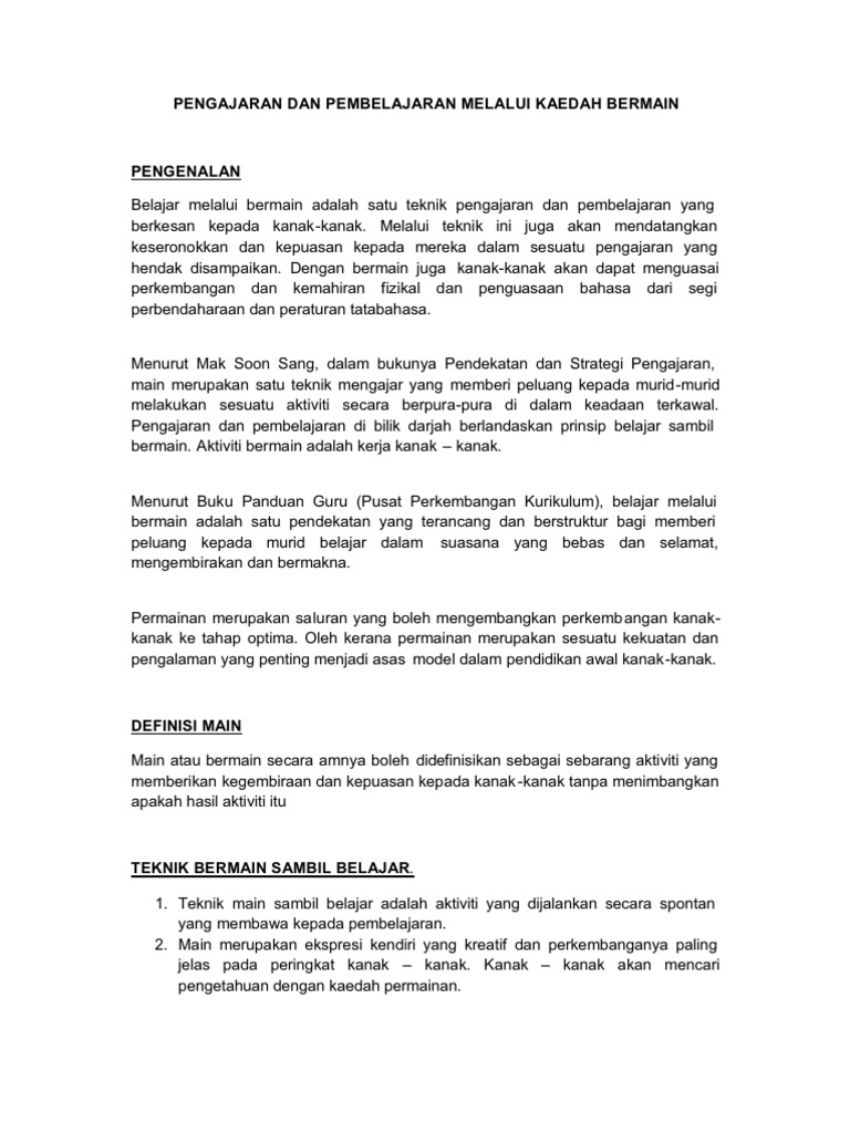 Pengajaran Dan Pembelajaran Melalui Kaedah Bermain Pdf